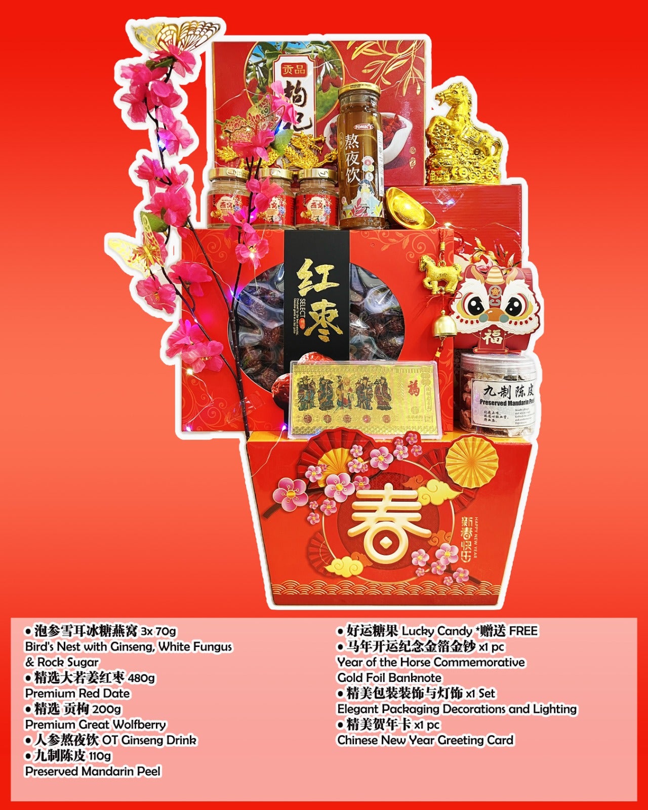 Get ready to spread joy and happiness with our CNY Hamper - Abundance 余 Prime Pack! Packed with traditional treats and goodies, this hamper is sure to bring good fortune and prosperity to your loved ones. Spread some Chinese New Year cheer with this thoughtful gift.